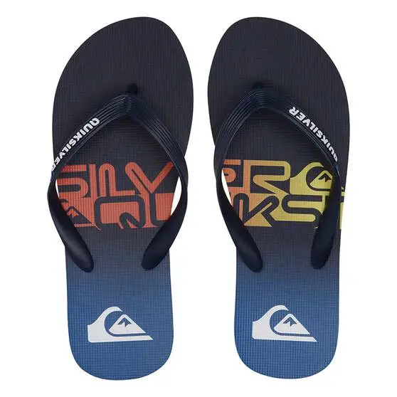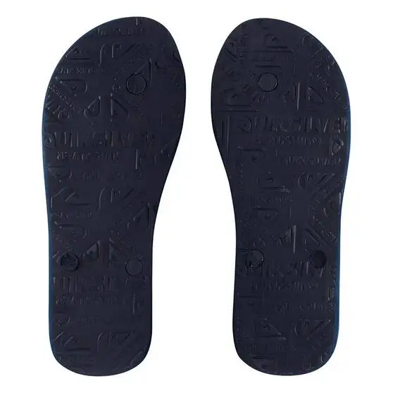 Say aloha to the Quiksilver Men’s Molokai Art Thongs. Featuring a flexible 3-point synthetic rubber sandal strap for the ultimate support, slip-resistant textured insoles to keep your feet where they should be, and a blown rubber outsole with multi-angled logo lugs for traction to keep you from falling like a tonne of bricks, the Quiksilver Men’s Molokai Art Thongs will be your top pick for any trip; from the epic getaway with mates to popping down to the shops. The pin lines in the sidewall give your pluggers some colour, while the Quiksilver branding and the fine mould mountain and wave logo let you show off this iconic Australian-founded surfwear brand with pride.