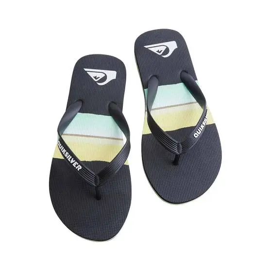 Say aloha to the Quiksilver Molokai Resin Tint Thongs. Featuring a flexible 3-point synthetic rubber sandal strap for the ultimate support, a slip-resistant textured footbed to keep your feet where they should be, and a blown rubber outsole with multi-angled logo lugs for traction, these thongs will be your top pick for any trip; from the epic getaway with mates to popping down to the shops.