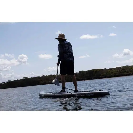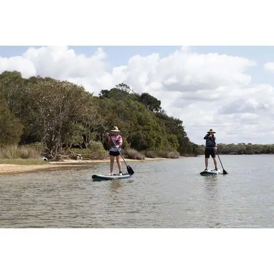 Have a fun day paddling on the water with the Tahwalhi Inflatable Stand-up Paddle Board Byron Sands 11′. This inflatable SUP cuts through water and keeps you stable as you navigate waterways. Made with a durable rigid drop stitch fabric over a PVC deck you will have stable footing with the EVA deck grip. Transport it easily with the handy carry bag and head out with everything you need to get going with a pump, leash, paddle and repair kit.
